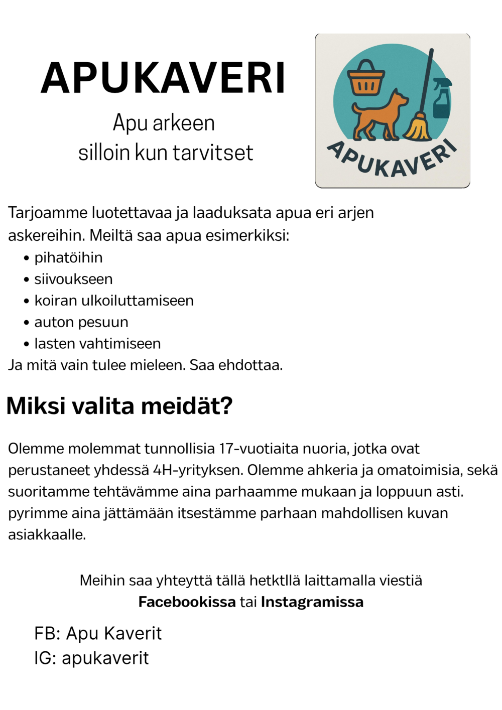 Luotettavaa ja laadukasta apua erilaisiin arjen askareisiin.