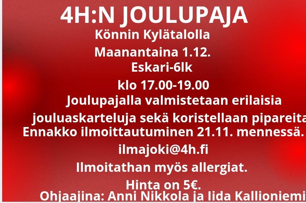 Muutoksia Ahonkylän 4H-kerhoon 11.11.2025 alkaen!!
