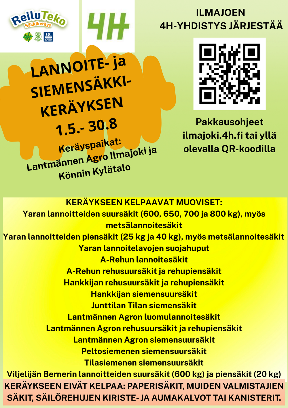 Keräyspisteenä viime vuodesta tutut Lantmännen Agro Ilmajoki sekä Könnin Kylätalon alue!